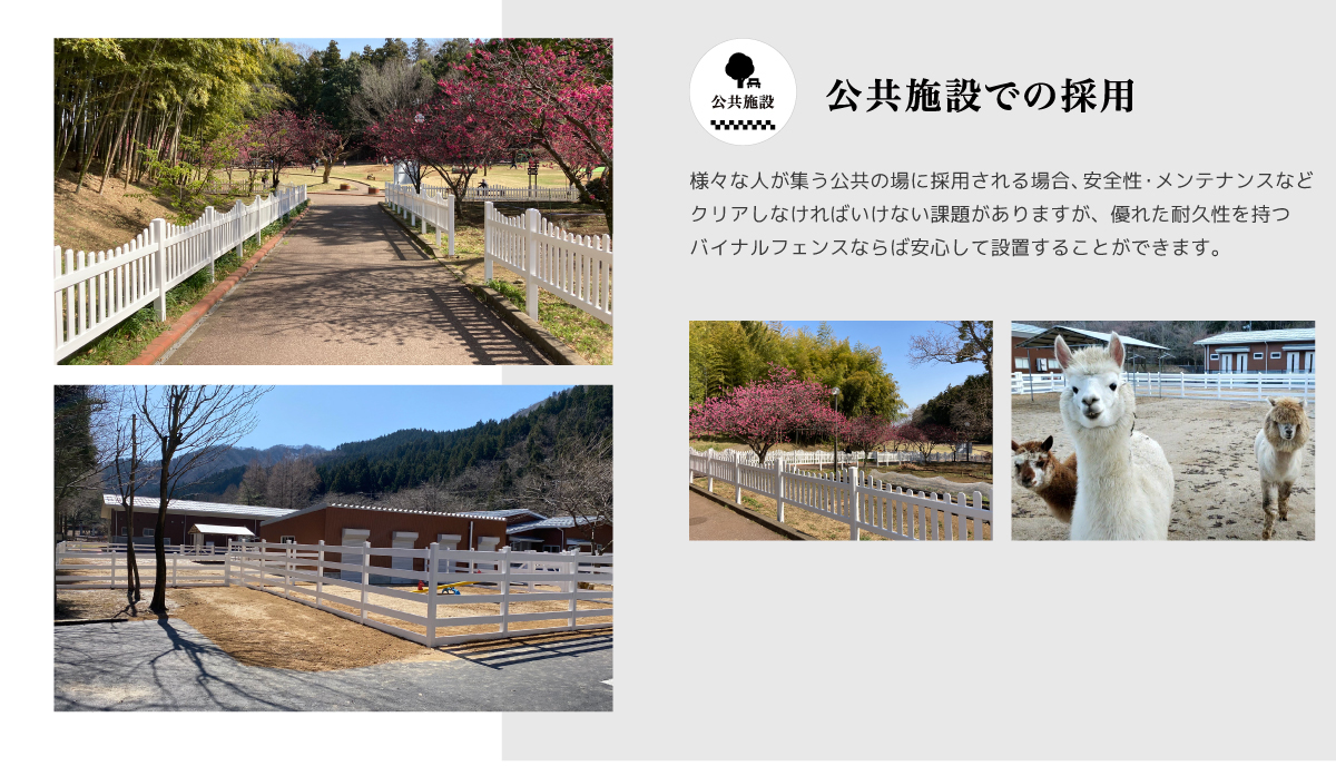 景観に美しくマッチする無公害商品、バイナルフェンスが次々と採用され始めています。