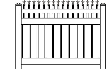 アイアンピケットは白いバイナルと黒いアイアンピケット・デザインのコントラストが美しいフェンスです。。