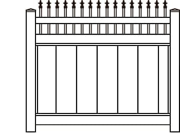 ソリッドプライバシーラティスフェンスはプライバシーをしっかり守る目隠しフェンスです。 周囲をしっかり囲むことで高級感を演出することができます。またフェンス上部にはピケットやラティス等のアクセントを入れることでよりおしゃれに仕上がります。