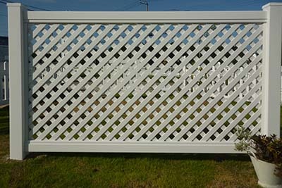 従来はウッドデッキの柵として人気のあったラティスフェンスですが、ガーデニングの人気とともに通常のフェンスとして採用される方が多くなりました。植物を絡ませたり、プランターを掛ける等お庭を彩るのに最適なおしゃれなフェンスです。また、透視性もあるため、景観条例等で透視性の低いフェンスの設置が難しい地域でも設置ができるため、プライバシーを気にされる方にも人気です。