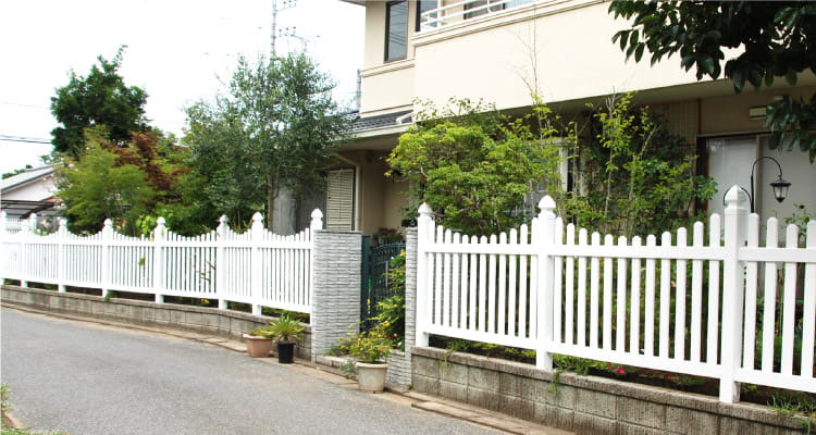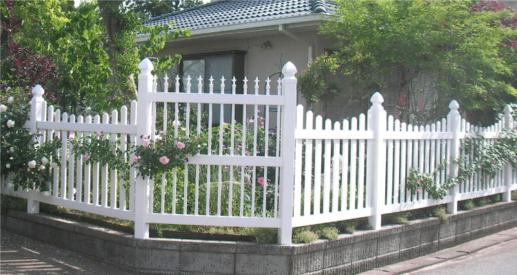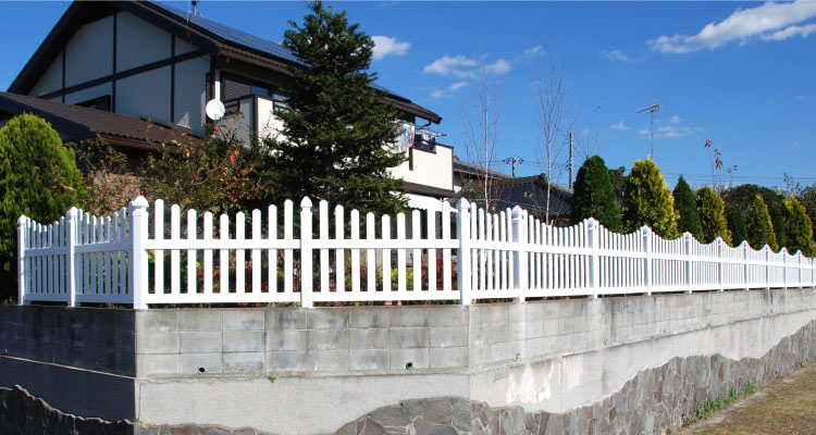 ルーテッドスカラップドピケットフェンスはピケットが縦に貫通したデザインです。上下に波を打つデザインは、アメリカンカントリーな雰囲気のお家にもぴったりで可愛さを演出します。ガーデニングにこだわるお客様に大人気のフェンスです。