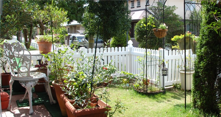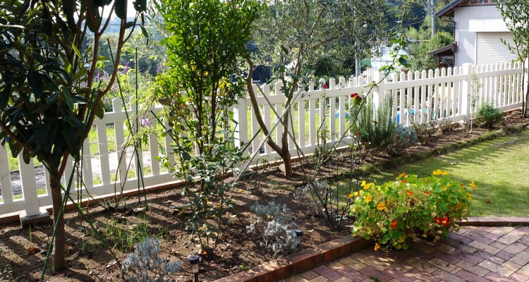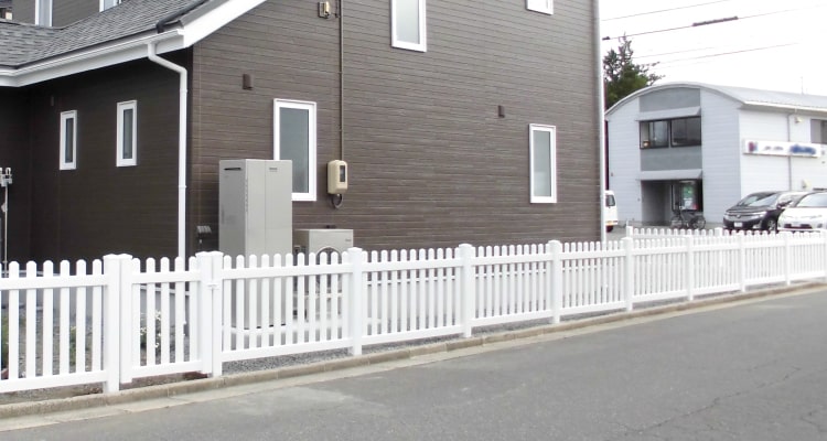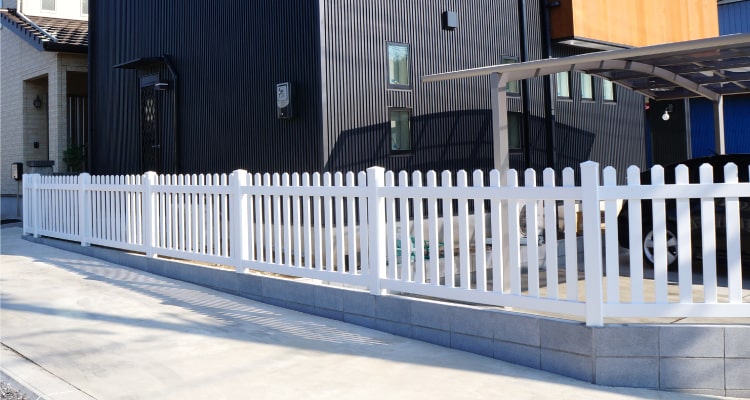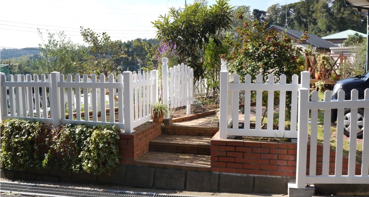 ルーテッドストレートピケットフェンスはピケットが縦に貫通したデザインです。アメリカなどの海外ドラマや映画でもよく見かけるデザインのフェンスです。全体の雰囲気をオシャレに演出し、圧迫感がなく、植物やお家の見栄えをより良くしてくれます。