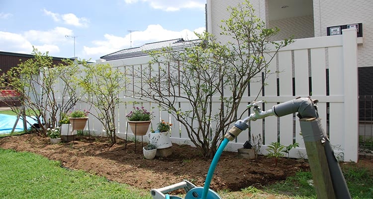 当初は通常の状態での納品でしたが、フェンスの奥の部分に生えた雑草などを処理したいということで急遽フェンス下部に手を伸ばせるように隙間を増やしました。最初は横のレールもなかったのですがレールを増やすことで違和感もなく、おしゃれな仕上がりになっています。