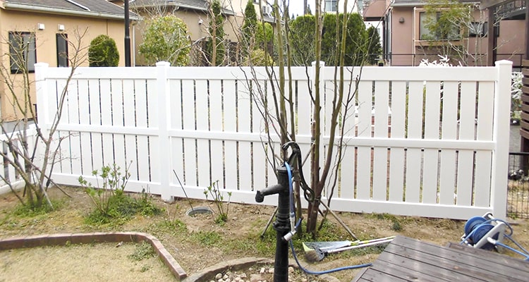 大型犬が柵を乗り越えてしまうということで高さのあるしっかりしたフェンスが必要ということでご提案。しっかりとした作りでご満足いただけました。